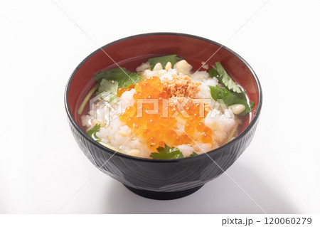 単体の鮭茶漬け(手描き、リアル、写実)