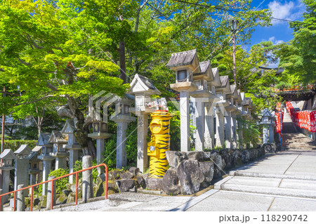春の京都 仁和寺 新緑に包まれた九所明神 拝殿への参道
