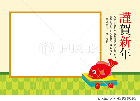 2019 鯛車 縁起物 フォトフレーム 年賀状 ベクターイラスト素材