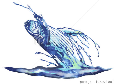 水しぶきを上げブリーチングする鯨イラスト