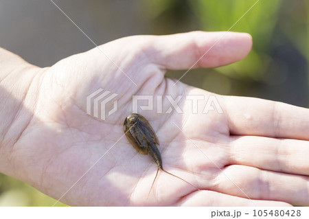 手のひらに乗せたカブトエビ
