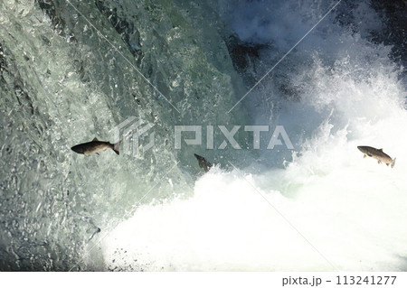 さくらの滝を遡上するサクラマス 北海道 清里町