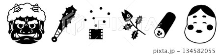 節分の鬼、おかめ、豆まき、柊鰯、太巻きの単色セット