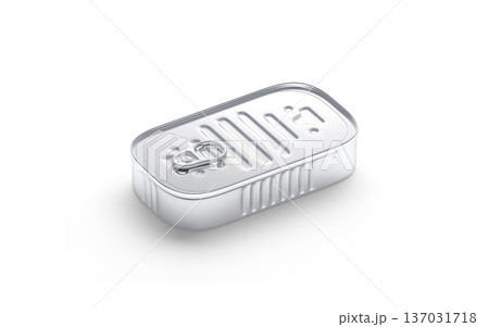 Blank aluminum sardine conserve can mockup png, transparent background, 3d rendering. Empty metallic jar or box for fish conservation mock up cut out. Clear sardines or sprat preserve package,