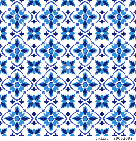 Azulejos portuguese traditional ornamental tile, blue and white seamless pattern