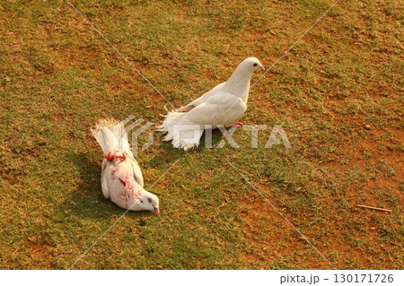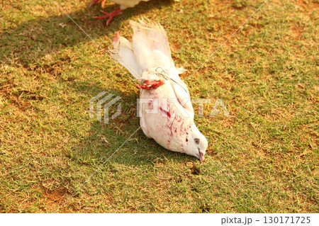 Pigeon with Blood in the lawn