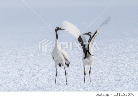 タンチョウ鶴の求愛ダンス-道東の冬景色