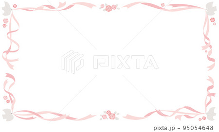 リボンと薔薇と鳥の手描きイラストフレーム 16:9 横位置
