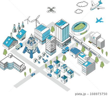 生活に根差したスマートシティの町並みイラスト バリエーションあり