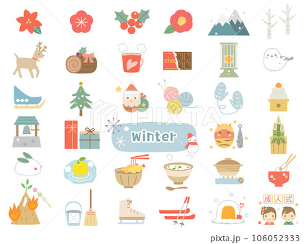 サンタや門松などの冬の行事などをイメージしたイラストのセット