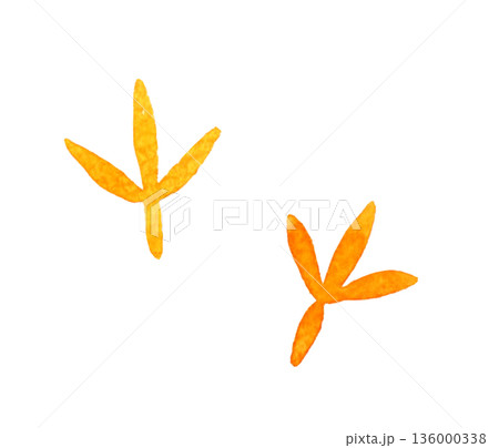 かわいい鳥の足跡 手描き水彩イラスト素材