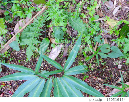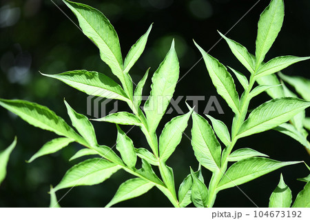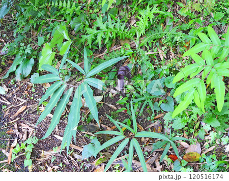 山野の木陰に生える怪しげな植物ウラシマソウの鳥足状の葉