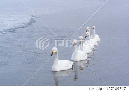4羽のオオハクチョウ ”屈斜路湖”