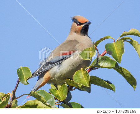 クロガネモチの木の実を食べに来たヒレンジャク