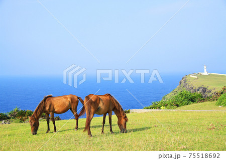 日本最西端 沖縄 与那国島 東崎の風景 与那国馬