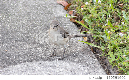 地面に降りたマネシツグミ