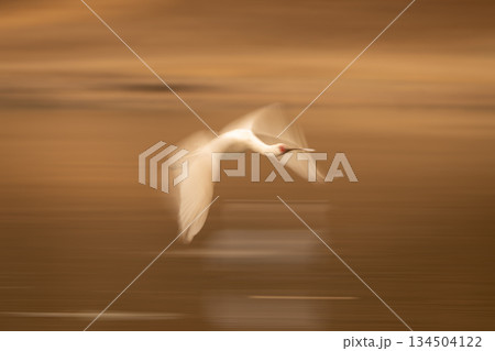 Slow pan of African spoonbill flapping wings