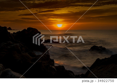 夕日に染まる、石川県輪島市鴨ヶ浦にて