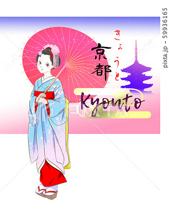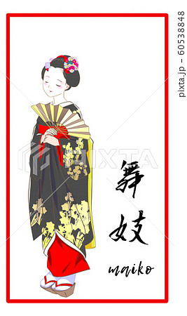女性 舞妓さん 着物 名刺風 白バック 全身