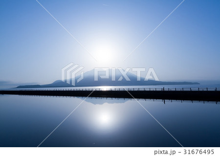 鴨池から眺めた早朝の桜島