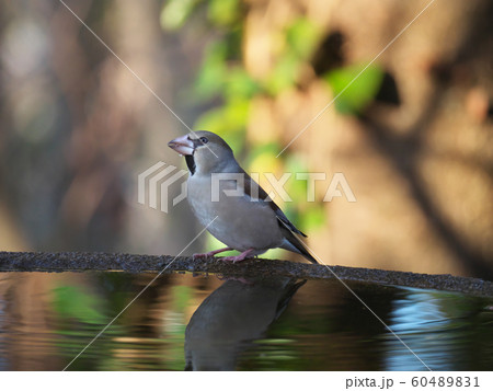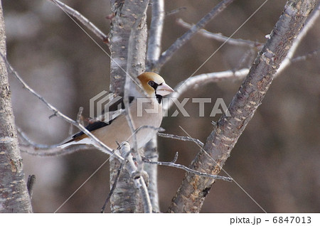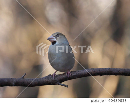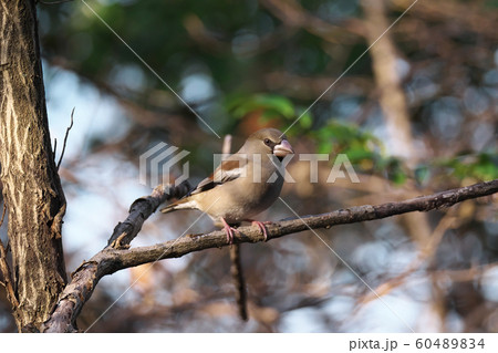 生き物 鳥類 シメ、冬鳥です。ずんぐりした体にペンチの様な嘴。「チンッ!」と甲高い声で鳴きます