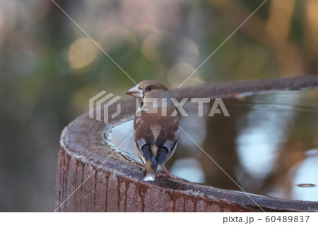 全身茶色で太くて短いクチバシの冬鳥 シメ