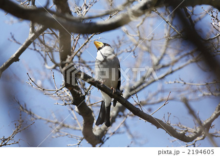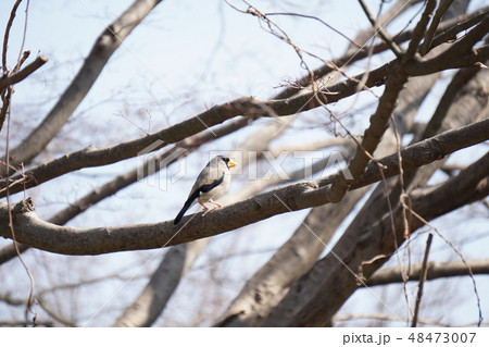 生き物 鳥類 イカル、遠くからでも嘴の黄色が目立ちます