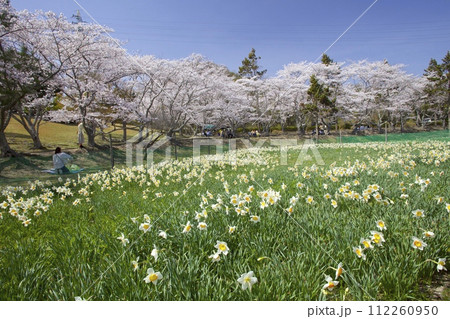 いこいの村はりまのスイセンと桜並木/兵庫県加西市笹倉町