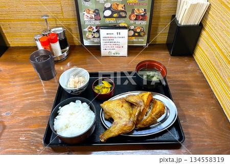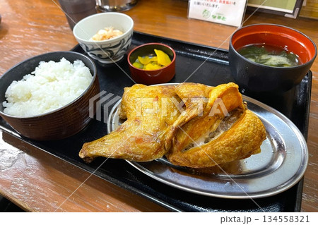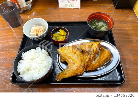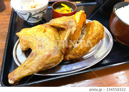 若鶏半身揚げ定食 若鶏定食 若鶏半身揚げ フライドチキン 小樽なると屋