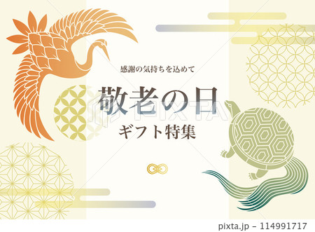 敬老の日の背景イラスト素材 ベクター 鶴と亀 和柄 飾り枠 フレーム