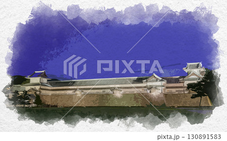水彩画風 金沢城 五十間長屋 石川県金沢市