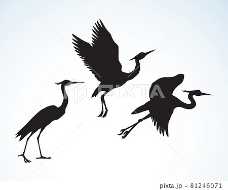 Illustration of a crane in flight on a plain white background. Crane silhouette with elegance