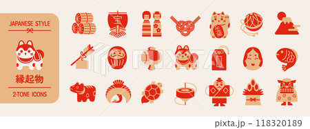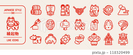 日本の縁起物アイコンセット 正月・年賀状・和風のデザインアイテム