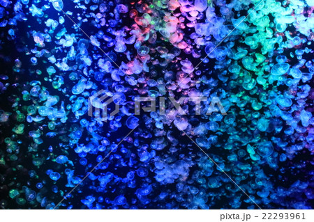 虹色にライトアップされたミズクラゲの大群