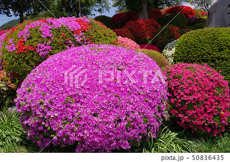 長野県岡谷市の鶴峯公園は、30余種3万株もの色とりどりのツツジが咲き乱れる中部日本一のツ