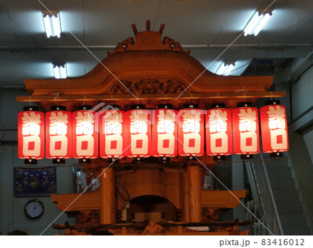 新年を祝ってともされるだんじりの提灯 【諸口八幡神社】