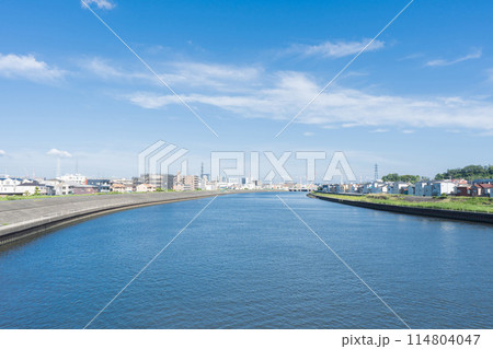 鶴見川にかかる鷹野大橋から海側を見た風景(川崎市・横浜市)