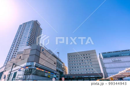 日本の横浜都市景観 鶴見駅前のシークレインなどを望む