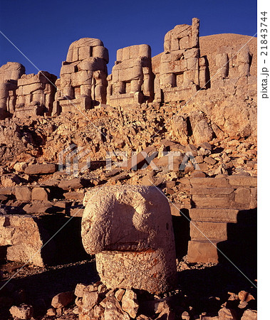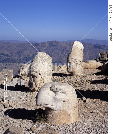 ネムルト山の鷲の頭像とゼウス頭像とアポロ神の頭像