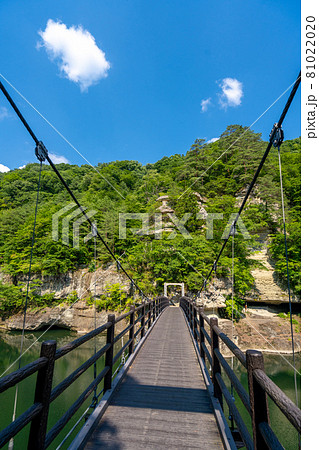 塔のへつり 藤見橋 岩浸食と風化を繰り返した見事な景観