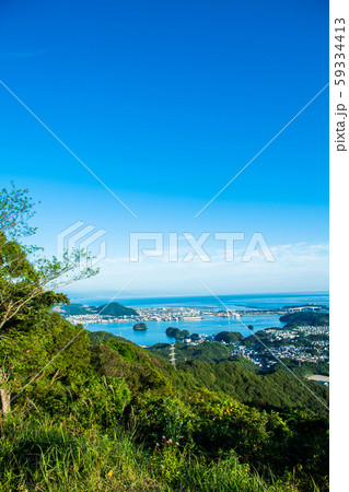 鷲尾山 山頂から土佐湾を眺める 初夏 (高知県 高知市)