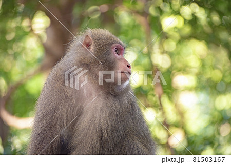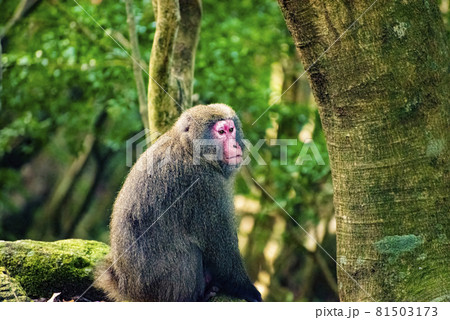 View of wild Yakushima Macaque monkey in Yakushima island, Japan