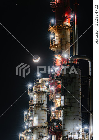 三日月と鹿島石油工場夜景