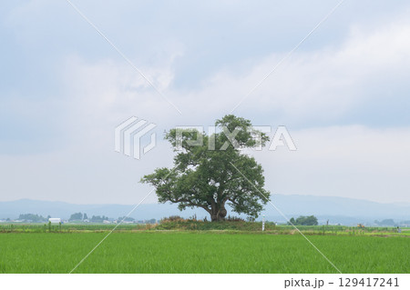 ヤマナシの木と水田 天然記念物 秋田県