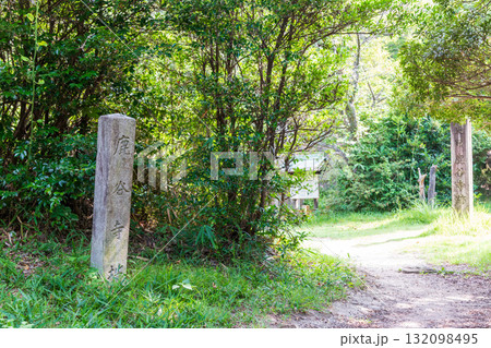 二上山、鹿谷寺跡へ通ずる入り口の石碑のある風景