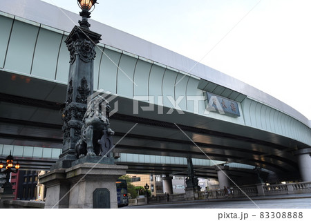 日本橋(麒麟像を含む装飾柱と道路元標地点碑、首都高)