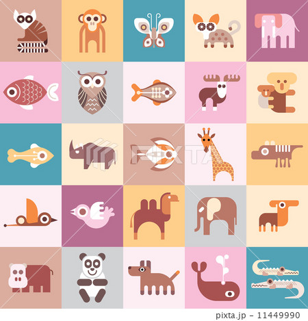 Big vector set with animals in cartoon style. Vector collection with mammals on a children s theme. EPS