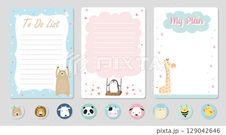 一組可愛的動物筆記本內頁設計圖框向量素材圖片