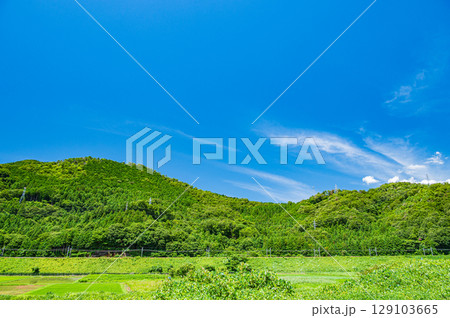 マキノ町の田園から望む野坂山地の景観 滋賀県高島市