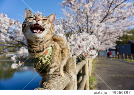 猫 散歩 お花見
